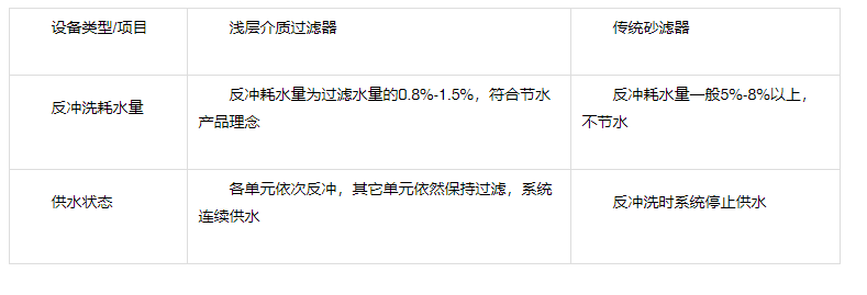 4、反洗水源可選系統內、水塔或外源水源,并可自動切換(特殊要求時)。反洗效率高,反洗時間短。 (水量是傳統砂濾器的30%左右)